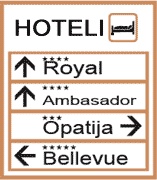 znak »putokazni pano za smještajne objekte« (41), označuje smjerove na kojima se nalaze hoteli, moteli i pansioni koji su na panou naznačeni.